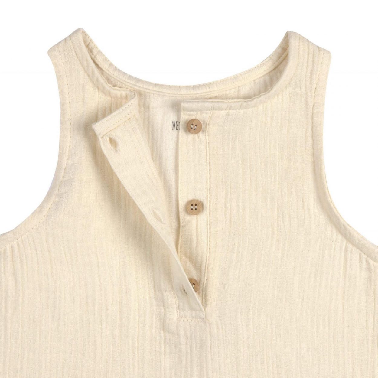 Der hellgelbe Musselin Jumpsuit für Kinder und Babys besteht aus reiner Baumwolle (bio) und sorgt für ein weiches Tragegefühl. Die schlichten Knopfleisten im Schritt und am Halsausschnitt erleichtern das An- und Ausziehen.